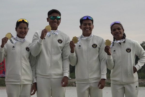 ANTARA - Kontingen Indonesia berhasil menorehkan medali emas SEA Games Thailand 2025 dari cabang olahraga kayak nomor 500 meter campuran, yang berlangsung di Pattaya Rayong, Chonburi, Rabu (10/12). Indra Hidayat, Ramla Baharuddin, Subhi, dan Stevani Maysche Ibo berhasil menjadi yang tercepat dalam balapan tersebut, dengan catatan waktu 1 menit 37,916 detik.(Moch Mardiansyah Al Afghani/Rizky Bagus Dhermawan/Ludmila Yusufin Diah Nastiti)