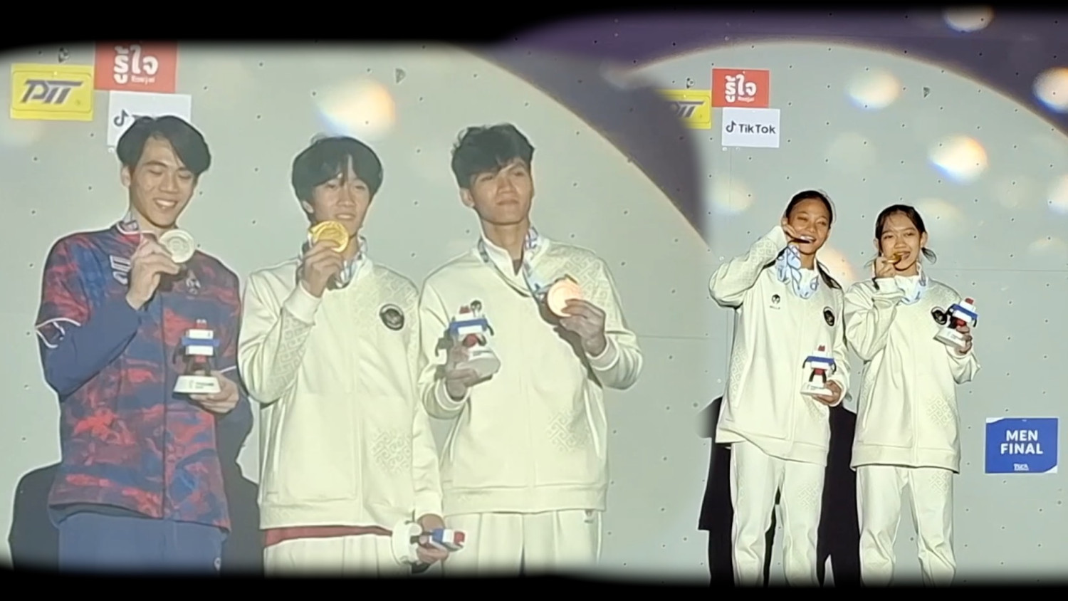 ANTARA - Indonesia berhasil mengantongi dua emas dari panjat tebing lead putra dan putri yang masing-masing dimainkan oleh Ardana Cikal Damarwulan dan Alma Ariella Tsany, Jumat (12/12), dalam ajang SEA Games 2025. Selain emas, atlet Indonesia turut mengamankan medali perak lewat Sukma Lintang Cahyani dan perunggu dari Caesar Mahesa. (Cahya Sari/Aditya Ramadhan/Denno Ramdha Asmara/Nanien Yuniar)