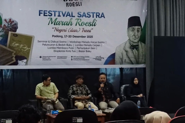 ANTARA - Dinas Kebudayaan Provinsi Sumatera Barat, melalui UPTD Taman Budaya menggelar Festival Sastra Marah Roesli "Marah Fest" tahun 2025, pada Rabu, (17/12). Festival Sastra Marah Roesli dengan tema "Negeri (dan) Ironi" digelar hingga tanggal 20 Desember, dengan berbagai kegiatan, bertujuan mengenalkan kembali Marah Roesli sebagai pelopor roman moderen Indonesia, membina pelaku seni sastra lokal dan meningkatkan kapasitas penulis muda Sumatera Barat, agar mampu melahirkan karya berkualitas dan berjiwa entrepreneurship, menguatkan ekosistem sastra melalui jalinan kerja sama antara sastrawan, akademisi, penerbit, dan komunitas (Melani Friati/Soni Namura/Roy Rosa Bachtiar)