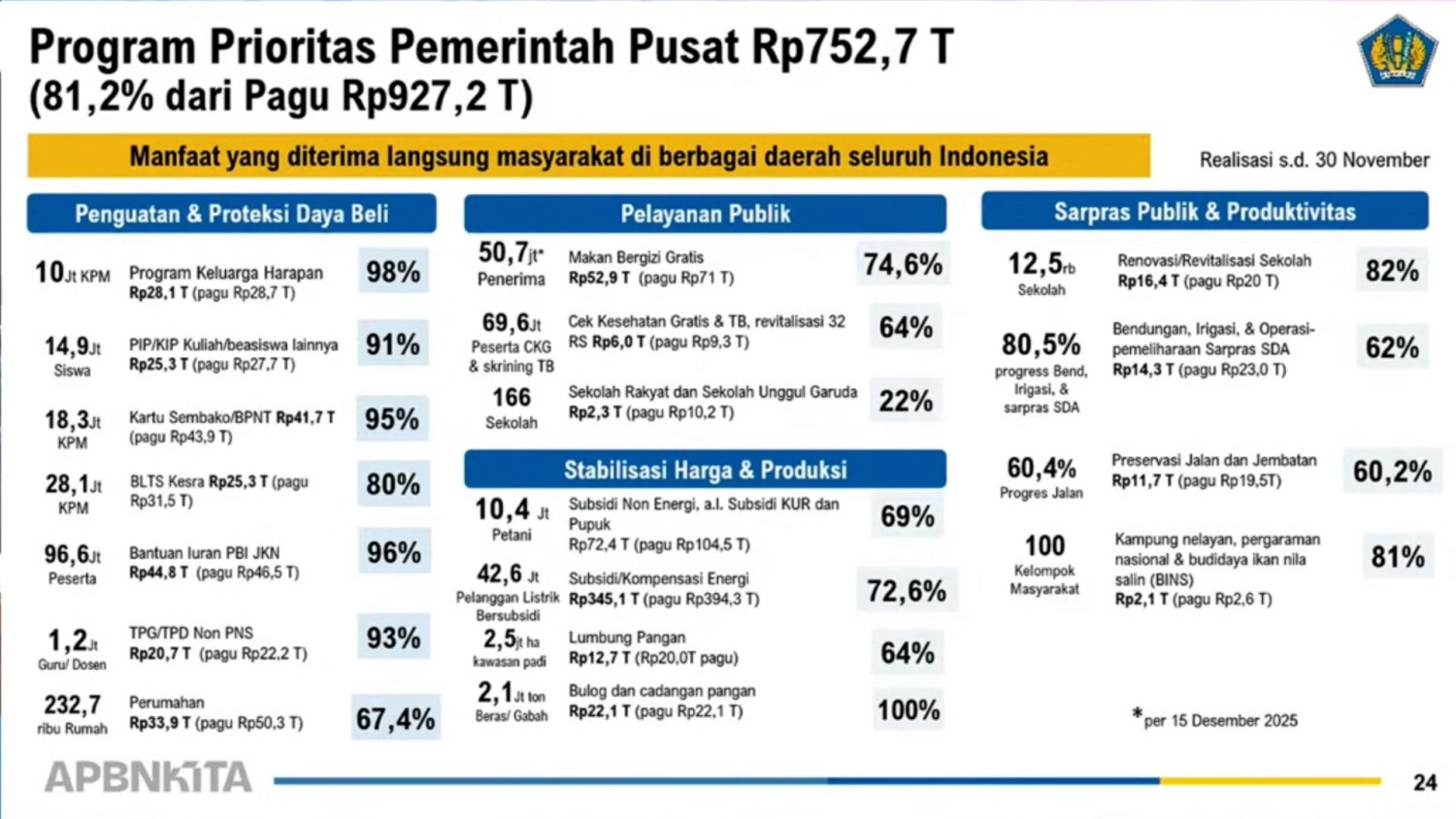 ANTARA - Realisasi program prioritas pemerintah terus menunjukkan kemajuan signifikan hingga akhir tahun anggaran. Wakil Menteri Keuangan Suahasil Nazara di Jakarta, Kamis (18/12), melaporkan sebagian besar program strategis telah mendekati target pelaksanaan. (Putri Hanifa/Irfansyah Naufal Nasution/Andi Bagasela/Roy Rosa Bachtiar)