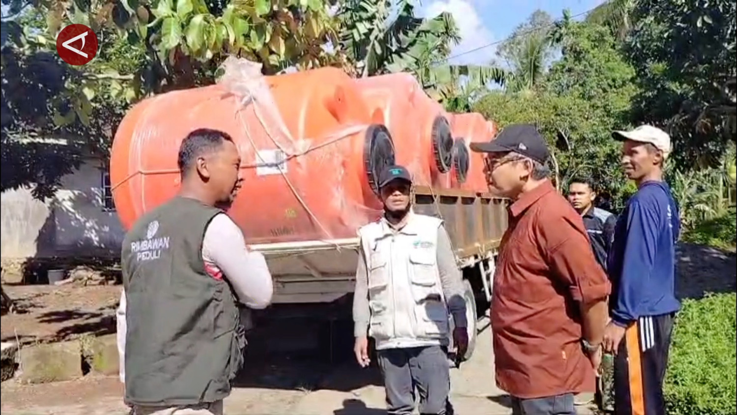ANTARA - Kementerian Kehutanan (Kemenhut) menyalurkan bantuan sarana air bersih, berupa pipa paralon dan tandon air, bagi 16 nagari terdampak bencana hidrometeorologi di Kabupaten Agam, Sumatera Barat, Jumat (19/12). Bantuan tersebut guna mengatasi kesulitan air bersih, yang dialami warga yang terdampak bencana. (Melani Friati/Agha Yuninda Maulana/Gracia Simanjuntak)