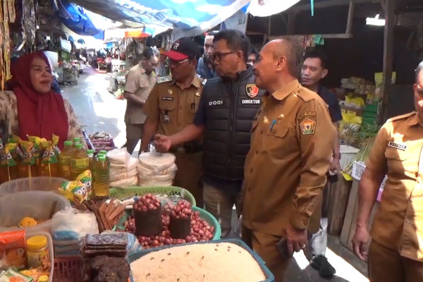 ANTARA - Satuan Tugas Pangan Sulawesi Tenggara yang terdiri dari Polda Sultra, pemerintah daerah beserta instansi lainnya, melakukan inspeksi ke sejumlah pasar tradisional dan ritel modern termasuk distributor di Kota Kendari untuk memastikan ketersediaan serta stabilitas harga komoditas menjelang perayaan Natal 2025 dan Tahun Baru 2026, Selasa (23/12). Dari inspeksi tersebut satgas mendapati beberapa kebutuhan pokok dijual di atas harga eceran tertinggi (HET) namun masih dalam batas wajar. (Saharudin/Rizky Bagus Dhermawan/Rijalul Vikry)