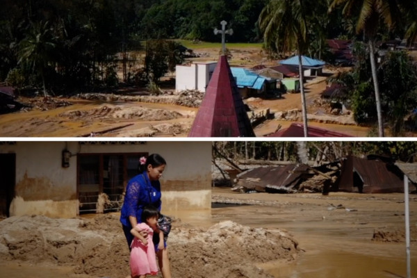ANTARA - Warga Hutanabolon, Tapanuli Tengah, Sumatera Utara, merayakan ibadah jelang Natal, Selasa (23/12). Pendeta Paten Sidabutar menyebut perayaan Natal tahun ini dilakukan dengan penuh kesederhanaan, khususnya masih dalam suasana berduka setelah bencana melanda. (Irfan Hardiansyah/Anggah/Soni Namura/Suwanti)