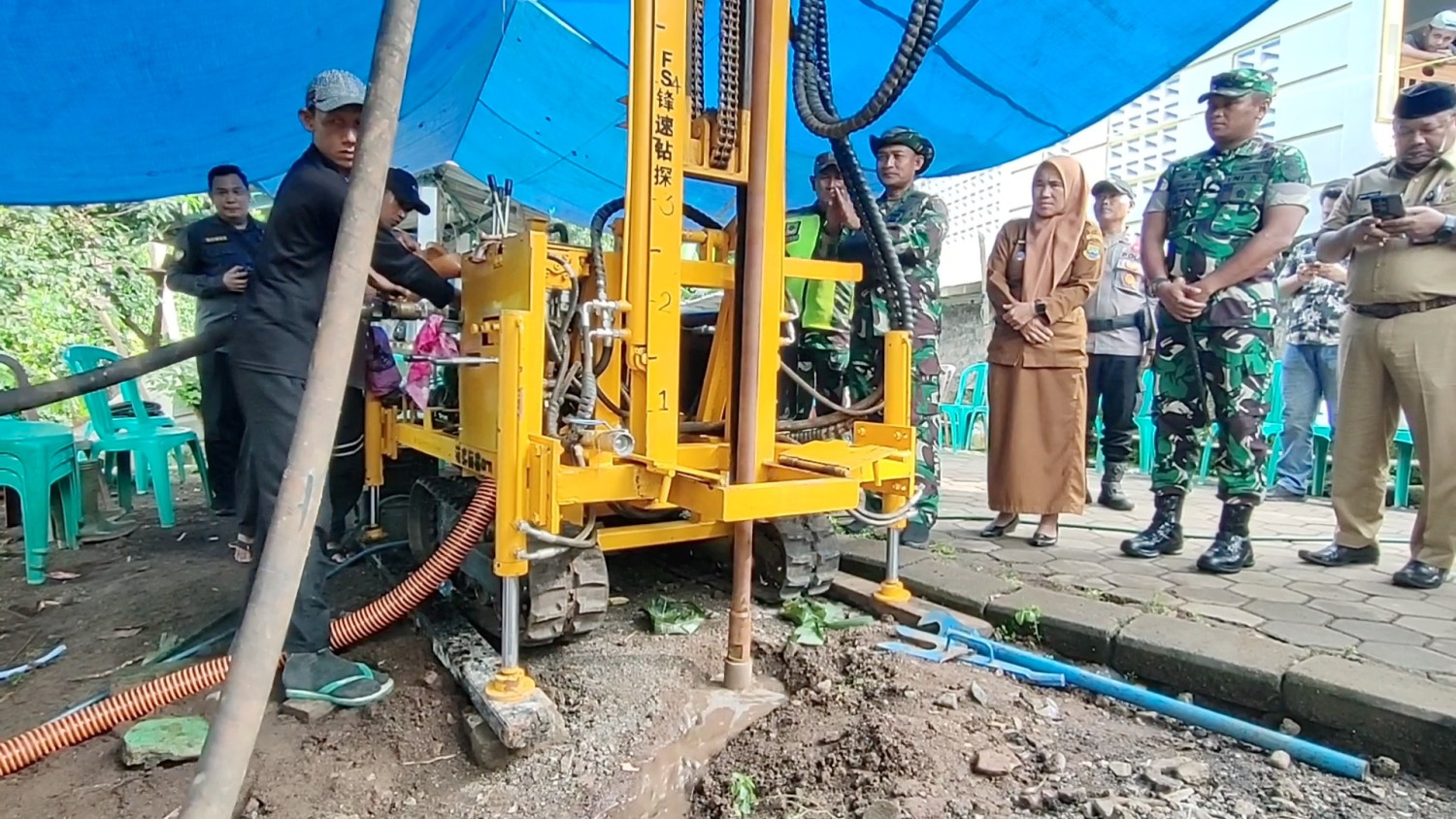 ANTARA - Kodim 0623 Cilegon membangun sumur bor di Lingkungan Cisuru, Kelurahan Suralaya, Kecamatan Pulomerak, Kota Cilegon, Banten. Pembangunan sumur bor ini dilakukan untuk membantu memenuhi kebutuhan air bersih warga yang selama ini bergantung pada turunnya hujan dan selalu krisis di saat kemarau tiba. (Susmiatun Hayati/Chairul Fajri/Rinto A Navis)