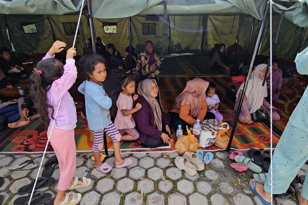 ANTARA - Lebih dari seribu masyarakat mengungsi di gedung Universitas Syiah Kuala Bener Meriah, Aceh karena status Gunung Api Bur Ni Telong menjadi Siaga III, Rabu (31/12). Warga kebanyakan berdomisili di bawah kaki gunung dan rentan terkena dampak jika terjadi bencana. (Try Vanny S/Denno Ramdha Asmara/Nabila Anisya Charisty)