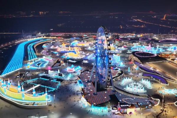 ANTARA - Harbin Ice-Snow World menarik wisatawan dari penjuru dunia, berkontribusi kepada ekonomi di China. Area seluas 1,2 juga meter persegi itu dibuka resmi pada 17 Desember. (XINHUA/ Nanien Yuniar/Rizky Bagus Dhermawan/I Gusti Agung Ayu N)