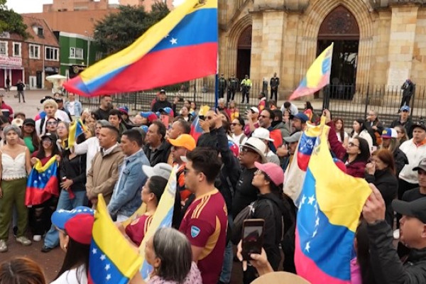 ANTARA - Warga Venezuela berkumpul di Bogota, Colombia untuk menyerukan perubahan politik. Mereka mengenakan kaus "Venezuela Libre", menyanyikan lagu kebangsaan Venezuela, dan mendesak transisi pemerintahan, saat Presiden Maduro ditahan di New York atas tuduhan narkoba.