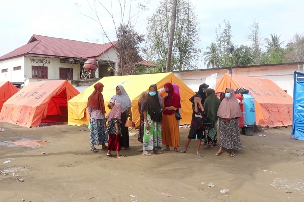 ANTARA - Korban bencana banjir bandang di posko pengungsian, Desa Meunasah Krueng Baro, Kecamatan Meuredu, Pidie Jaya, berharap untuk bisa segera menempati rumah hunian sementara, yang disiapkan pemerintah. Aisyah salah seorang pengungsi (6/1) mengaku, tidak bisa kembali kerumah lantaran rumahnya rusak berat dan masih tergenang lumpur. Kini Aisayah bersama anak dan cucunya menempati tenda yang disediakan BNPB. (Aprizal Rachmad/Andi Bagasela/Hilary Pasulu)