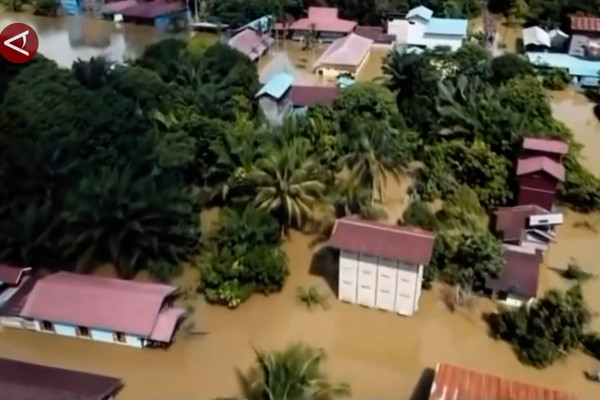 ANTARA - Banjir merendam 18 desa di Kecamatan Tabang, Kabupaten Kutai Kartanegara, Kalimantan Timur hingga akses transportasi terputus. Banjir terjadi karena luapan Sungai Belayan tersebut, melumpuhkan aktivitas masyarakat dan mengganggu jaringan listrik setempat. (Hanifan Ma'ruf/Sandy Arizona/Rinto A Navis)