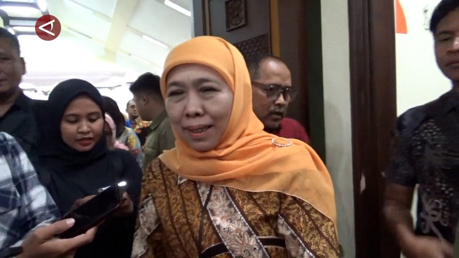 ANTARA - Gubernur Jawa Timur Khofifah Indar Parawansa menyerahkan proses penegakan hukum kepada aparat Komisi Pemberantasan Korupsi (KPK) atas operasi tangkap tangan (OTT) yang turut membekuk Wali Kota Madiun Maidi. Sebanyak 15 orang terjaring dalam OTT tersebut yang diinformasikan terkait dugaan korupsi proyek, serta dana tanggung jawab sosial dan lingkungan perusahaan (CSR) di Kota Madiun, Jawa Timur. (Hanif Nasrullah/Arif Prada/Roy Rosa Bachtiar)