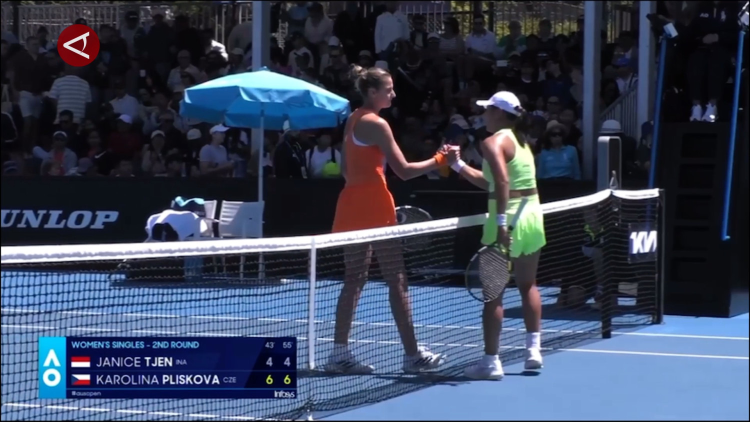 ANTARA - Langkah Petenis putri Indonesia Janice Tjen terhenti setelah kalah dua set langsung dari petenis Ceko Karolina Pliskova, pada babak kedua Australian Open 2026, Kamis (22/1). Janice dikalahkan mantan petenis nomor 1 dunia itu dengan skor 4-6, 4-6.(Cahya Sari/Sandy Arizona/Nabila Anisya Charisty)