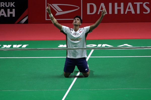 ANTARA - Atlet bulu tangkis tunggal putra Indonesia, Alwi Farhan, berhasil menjuarai turnamen Indonesia Master 2026. Alwi mengalahkan wakil Thailand, Panitchapon Teeraratsakul di Istora Gelora Bung Karno Senayan, Minggu (25/1), dengan skor 21-5 dan 21-6. (Ibnu Zaki/Satrio Giri Marwanto/Farah Khadija)