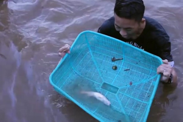 ANTARA - Ikan-ikan mati dan timbul ke permukaan air yang disebabkan air bangai di Sungai Mahakam menjadi buruan warga. Air bangai merupakan fenomena alami karena penurunan kadar oksigen di perairan sungai yang mengakibatkan biota air timbul ke permukaan dan mati. (Hanifan Ma'ruf/Rizky Bagus Dhermawan/Roy Rosa Bachtiar)