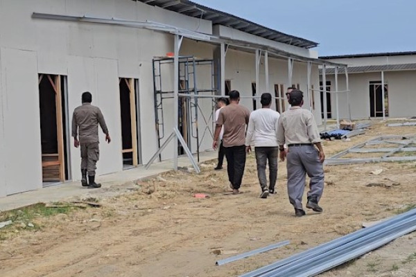 ANTARA - Pemerintah Kota Lhokseumawe memastikan pembangunan hunian sementara (huntara) di Desa Blang Naleung Mameh, Kecamatan Muara Satu, tak lagi terkendala karena kekurangan material . Kamis (5/2), Pemko Lhokseumawe meninjau lanjutan pembangunan 55 unit huntara dan mendorong komitmen para pekerja bangunan untuk lembur agar huntara bisa ditempati sebelum bulan puasa. (Try Vanny S/Rizky Bagus Dhermawan/Rinto A Navis)