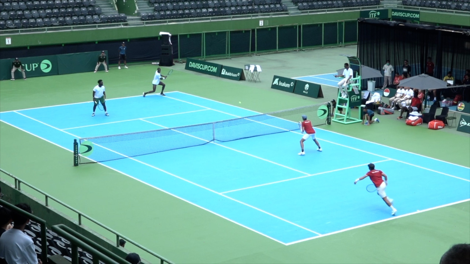 ANTARA - Tim tenis putra Indonesia meraih kemenangan penting atas Togo dalam ajang Playoff Piala Davis Grup II Dunia yang digelar di Stadion Tenis GBK, Senayan, Jakarta, Minggu (8/2). Hasil tersebut memastikan Indonesia melangkah dan mengamankan posisi di Grup II Dunia. (Putri Hanifa/Satrio Giri Marwanto/Yogi Rachman)