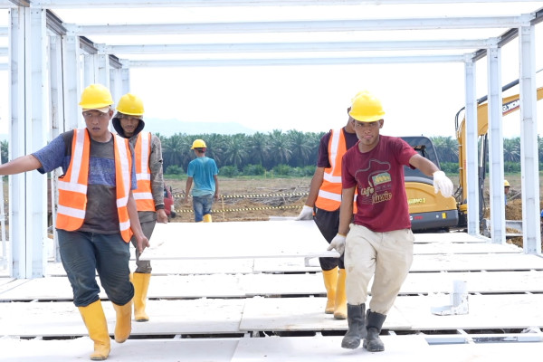 ANTARA - Sekretaris Direktorat Jenderal Prasarana Strategis, Kementerian Pekerjaan Umum Essy Asiah, Rabu (11/2), di Tapanuli Selatan, Sumatera Utara mengatakan pembangunan 245 unit hunian sementara (huntara) di Batang Toru diperkirakan dapat selesai sebelum Ramadhan. Dibangun dengan konsep modular, huntara tersebut bisa dikerjakan dalam waktu lima hari dengan mengerahkan 300 pekerja. (Rina Nur Anggraini/Gunawan Wibisono/Chairul Fajri/Rijalul Vikry)