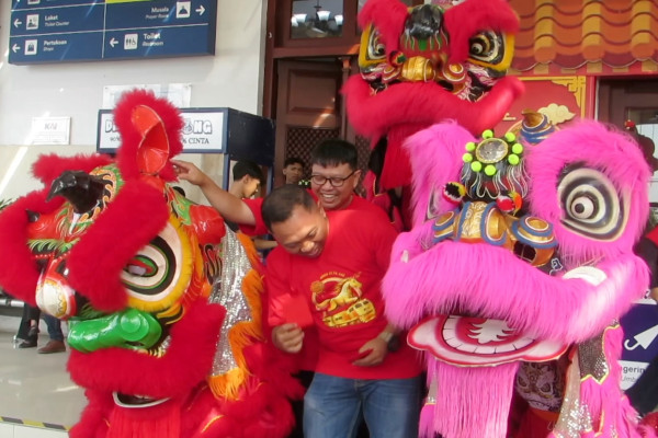 ANTARA - PT Kereta Api Indonesia (KAI) Daerah Operasi (Daop) 9 Jember menggelar atraksi Barongsai serentak di dua titik utama, yakni Stasiun Jember dan Stasiun Banyuwangi, Jawa Timur. Pertunjukan ini menjadi kejutan spesial bagi para penumpang yang melakukan perjalanan dengan kereta api pada libur panjang akhir pekan ini. Daop 9 mencatat, selama 5 hari libur, jumlah penumpang kereta api mencapai 55.000 orang. (Hamka Agung Balya/Chairul Fajri/Rinto A Navis)