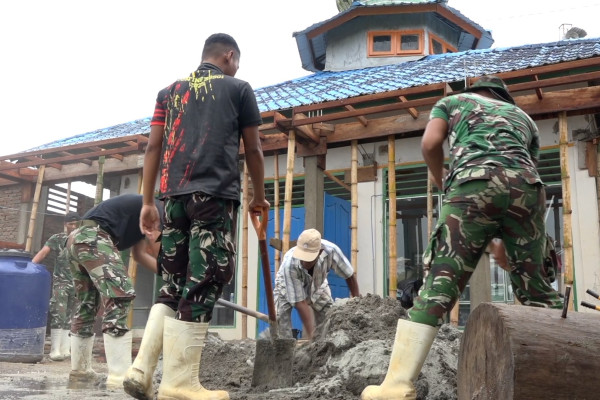 ANTARA - Warga penyintas bencana di Desa Hutagodang, Kecamatan Batang Toru, Tapanuli Selatan, Sumatera Utara, bersiap menyambut ramadhan dengan memperbaiki dan membersihkan masjid. Mereka bekerja sama dengan petugas dari TNI AD, membersihkan Masjid Taqwa Muhammadiyah Huta Godang yang pada November lalu terendam banjir hingga halamannya dipenuhi batang pepohonan. (Sanya Dinda Susanti/Fahrul Marwansyah/Ludmila Yusufin Diah Nastiti)