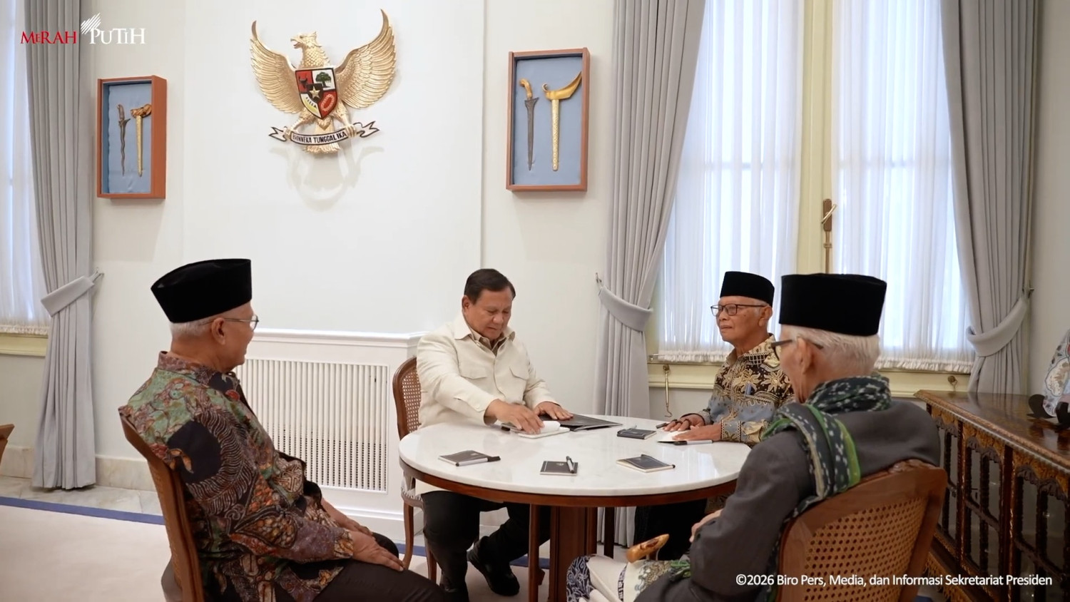 ANTARA - Presiden Prabowo Subianto menggelar buka puasa bersama sejumlah tokoh dan pimpinan organisasi masyarakat Islam di Istana Kepresidenan Jakarta, Kamis (5/3)). Pertemuan tersebut juga diisi diskusi mengenai situasi geopolitik global, termasuk eskalasi konflik di Timur Tengah dan dampaknya bagi Indonesia. (Aria Cindyara/Irfansyah Naufal Nasution/Soni Namura/Roy Rosa Bachtiar)