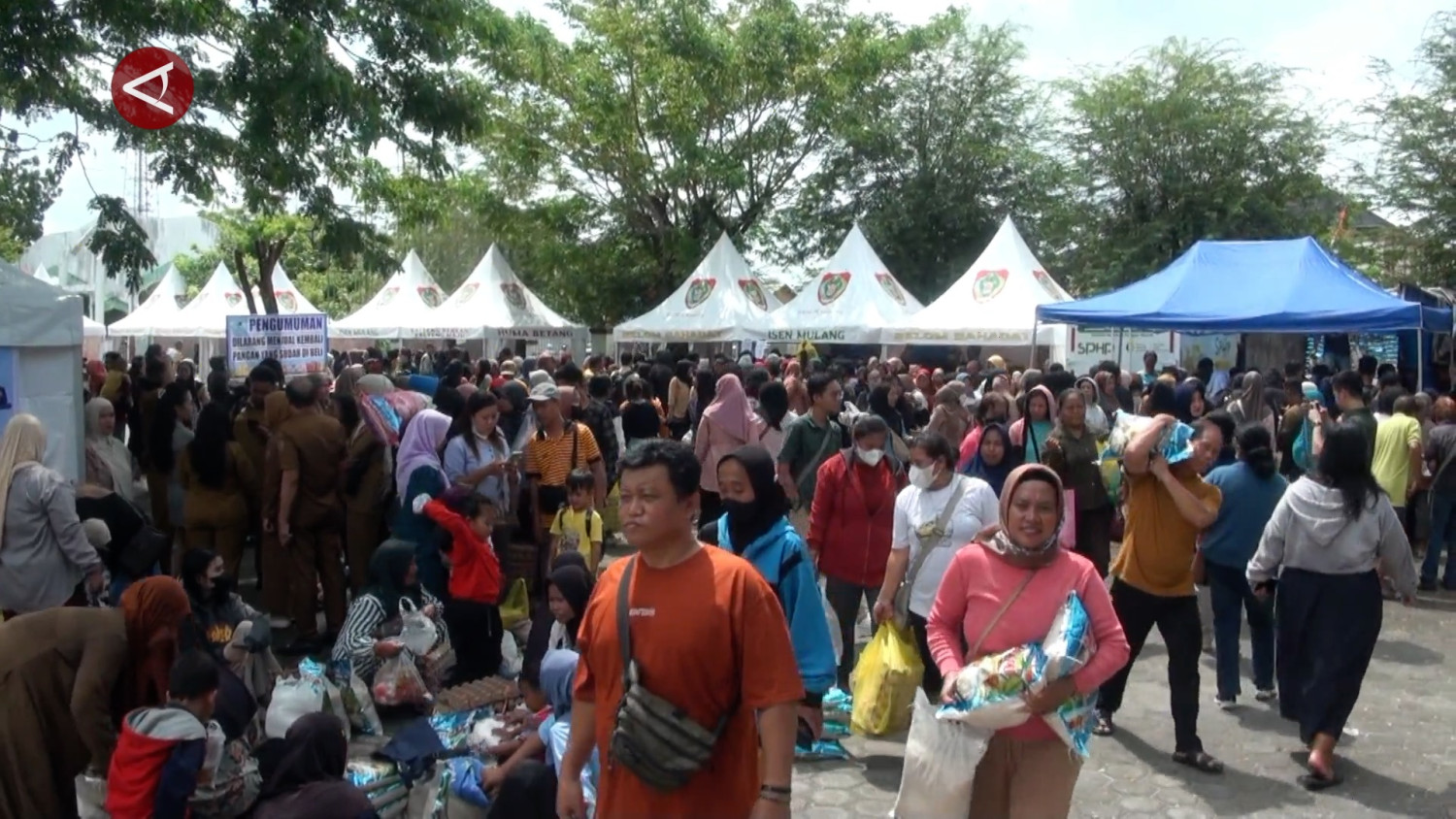 ANTARA - Ratusan warga memadati kegiatan pangan murah yang digelar Pemerintah Provinsi Kalimantan Tengah di Kota Palangka Raya. Warga datang untuk mendapatkan berbagai kebutuhan pokok dengan harga lebih murah dari pasaran. Program ini digelar untuk membantu masyarakat memenuhi kebutuhan pangan menjelang hari raya.