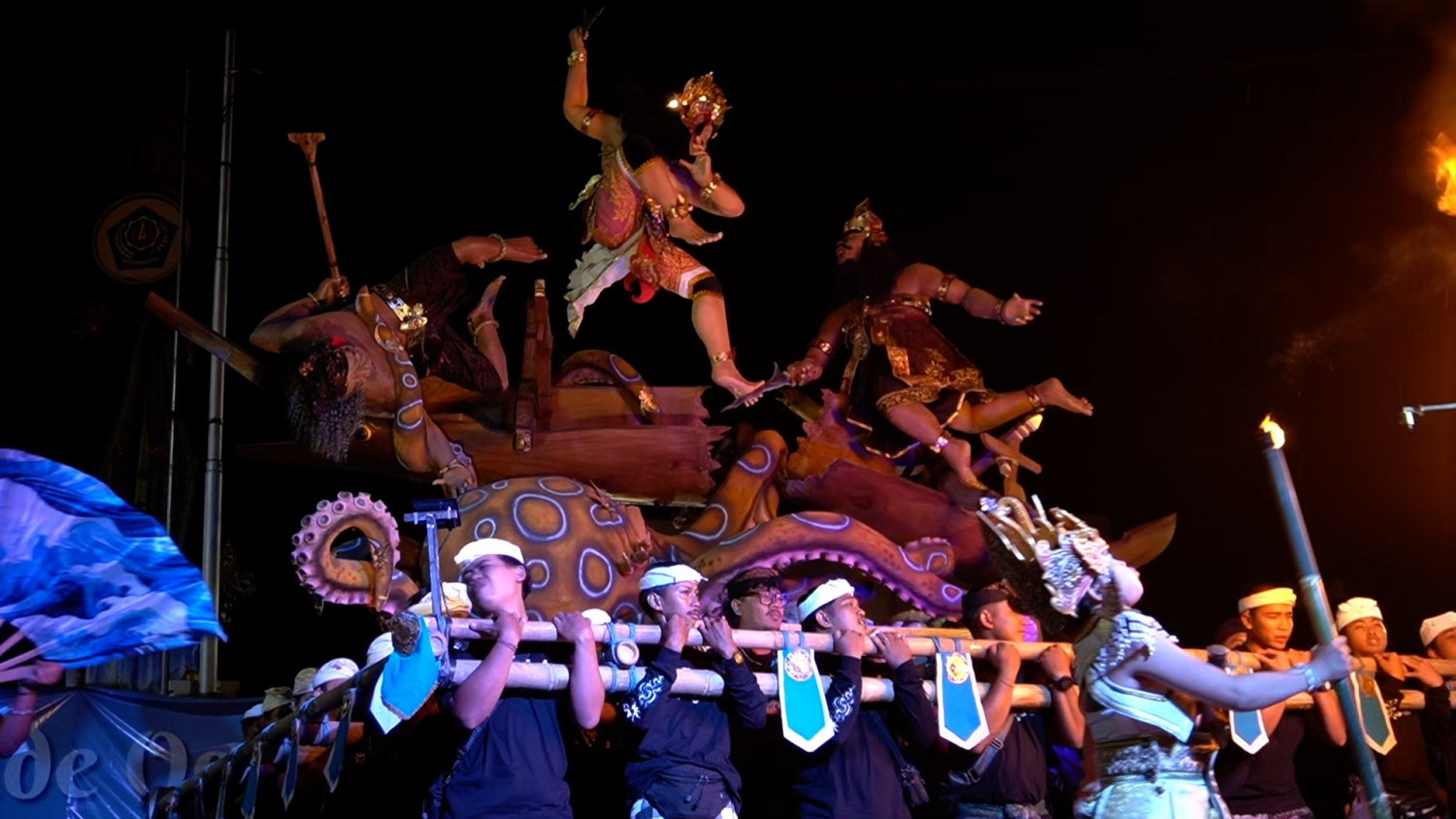ANTARA - Ratusan warga Kota Denpasar melakukan pengarakan ogoh-ogoh di malam pengerupukan sebelum Nyepi, Rabu (18/3). Salah satunya pengarakan ogoh-ogoh dalam parade yang diikuti anak-anak hingga dewasa. (Rita Laura/Soni Namura/Gracia SimanjuntaK)
