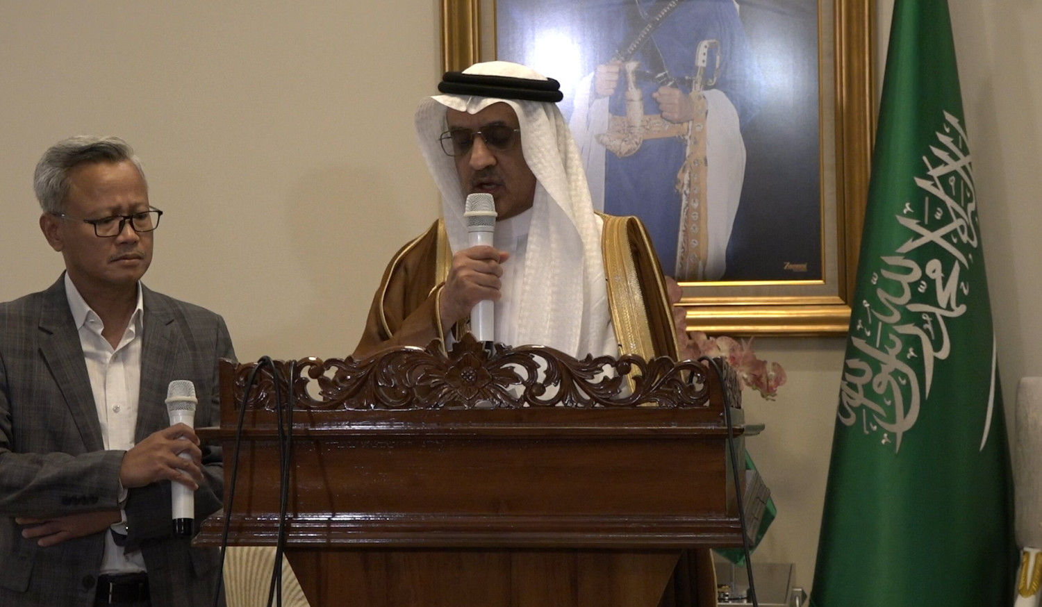 ANTARA - Pemerintah Kerajaan Arab Saudi mengecam rangkaian serangan yang dilakukan Iran di kawasan Timur Tengah. Duta Besar Arab Saudi untuk Indonesia Faisal bin Abdullah Al-Amoudi dalam konferensi pers, Selasa (24/3), menegaskan bahwa tindakan Iran tidak hanya melanggar hukum internasional, tetapi juga mengancam stabilitas ekonomi global dan persatuan umat Islam. (Azhfar Muhammad Robbani/Rizky Bagus Dhermawan/Gracia Simanjuntak)