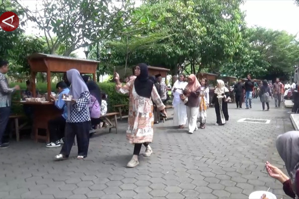 ANTARA - Silaturahmi Idul Fitri masyarakat Yogyakarta di tahun ini hadir dengan nuansa yang lebih sederhana namun menonjolkan kearifan lokal. Kali ini suasana keakraban dibangun melalui kehadiran sekitar 70 gerobak angkringan untuk menjamu masyarakat yang hadir dalam gelaran silaturahmi. (Imam Prasetyo Nugroho/Dudy Yanuwardhana/Rinto A Navis)
