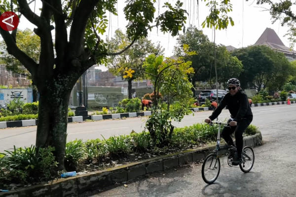 ANTARA - Wali Kota Solo Respati Ardi memulai gerakan bersepeda ke kantor atau bike to work pada Jumat (10/4) sebagai kampanye hemat energi. Ia menempuh sekitar 17 kilometer dari rumah dinas Loji Gandrung hingga Balai Kota Solo. Gerakan ini diharapkan mendorong aparatur sipil negara mengurangi penggunaan kendaraan dinas.