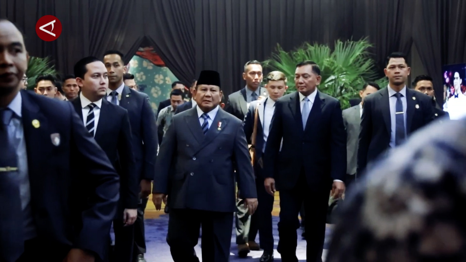 ANTARA - Presiden Republik Indonesia Prabowo Subianto menghadiri resepsi pernikahan El Rumi dan Syifa Hadju yang berlangsung di Hotel Raffles Jakarta, Minggu (26/4). Kehadiran Prabowo merupakan bentuk persahabatan yang telah terjalin lama dengan Ayah El, Ahmad Dhani yang juga merupakan kader Gerindra.