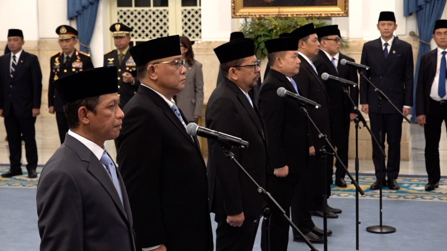 ANTARA - Presiden Prabowo Subianto merombak kabinet untuk kelima kalinya, Senin (27/4) dengan melantik Dudung Abdurachman sebagai Kepala Staf Kepresidenan, menggantikan Muhammad Qodari yang kini menjabat Kepala Badan Komunikasi Pemerintah. Dalam jabatan barunya, Dudung mengaku siap membuka layanan pengaduan 24 jam, sementara Qodari menegaskan pentingnya memperkuat komunikasi pemerintah karena publik dinilai masih membutuhkan penjelasan atas berbagai program pemerintah. (Afra Augesti/Cahya Sari/Satrio Giri Marwanto/Hilary Pasulu)